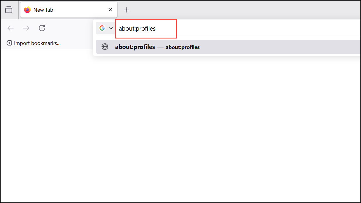Step 1: In the address bar, type about:profiles and press Enter.