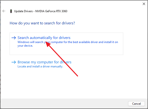 - Select Search automatically for drivers. Windows will search for and install any available updates.