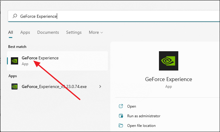 - Open GeForce Experience by searching for it in the Start menu.