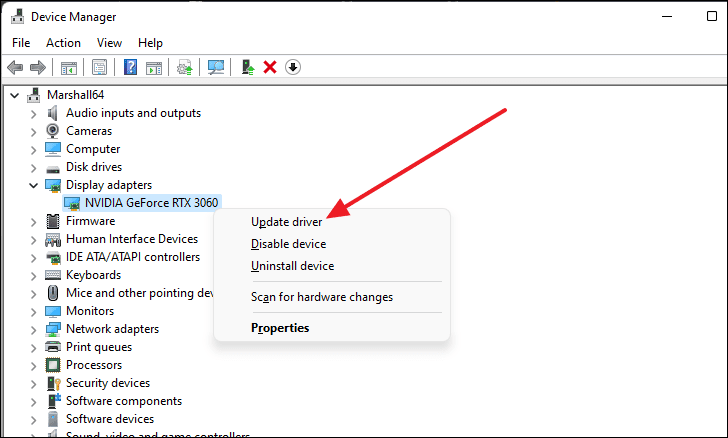 - Right-click your graphics card and choose Update driver.