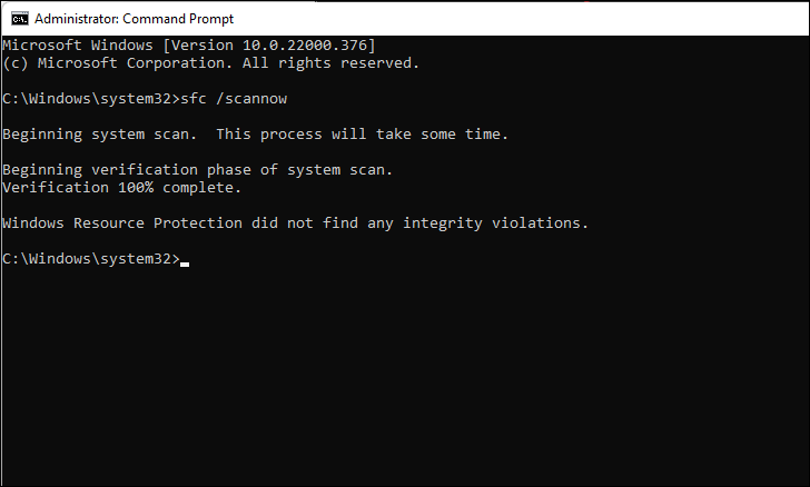 - Review the results displayed in Command Prompt. If any issues were found and fixed, restart your computer.