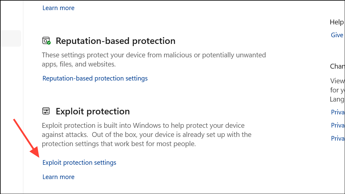Adjust Exploit Protection Settings in Windows Security