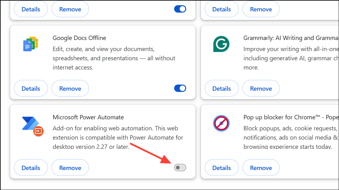 Step 2: Toggle off all extensions to disable them. If web pages begin loading correctly, re-enable extensions one at a time to identify the problematic one.