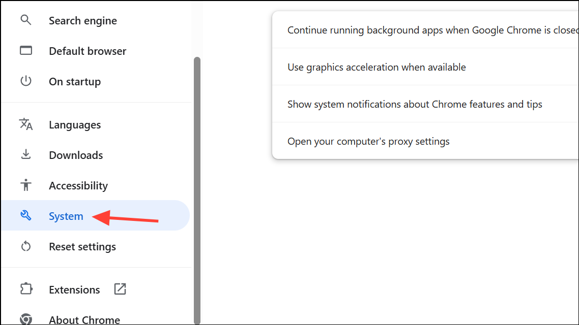 Step 2: Toggle off “Use hardware acceleration when available.”