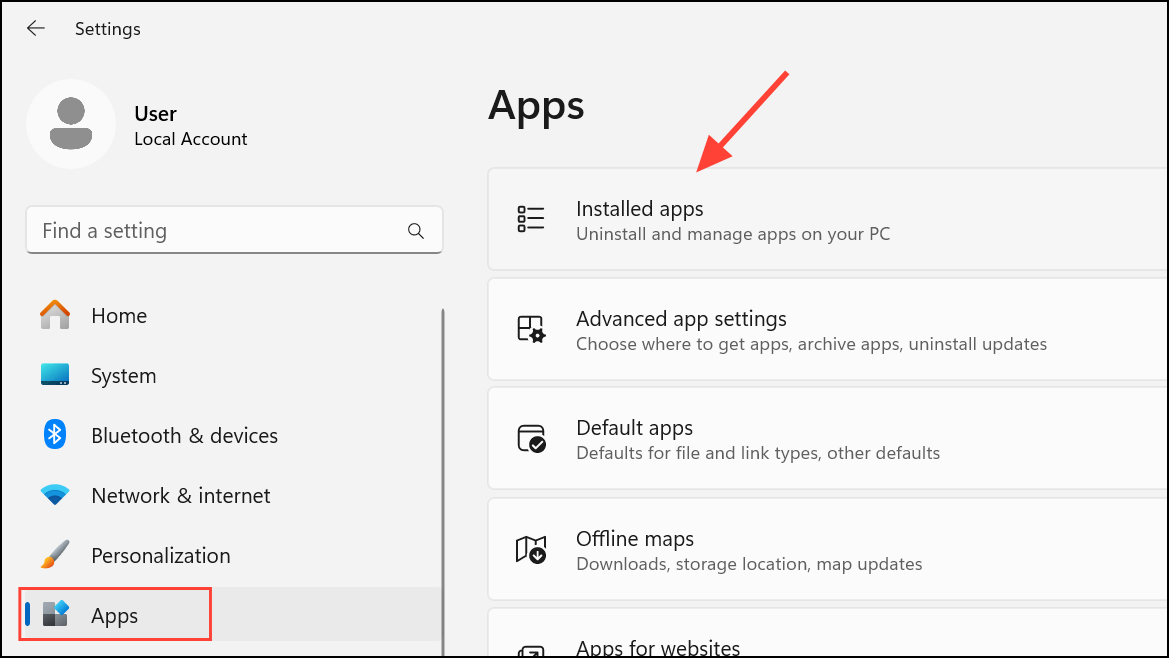 Step 1: Open Settings via Windows + I, go to Installed apps.