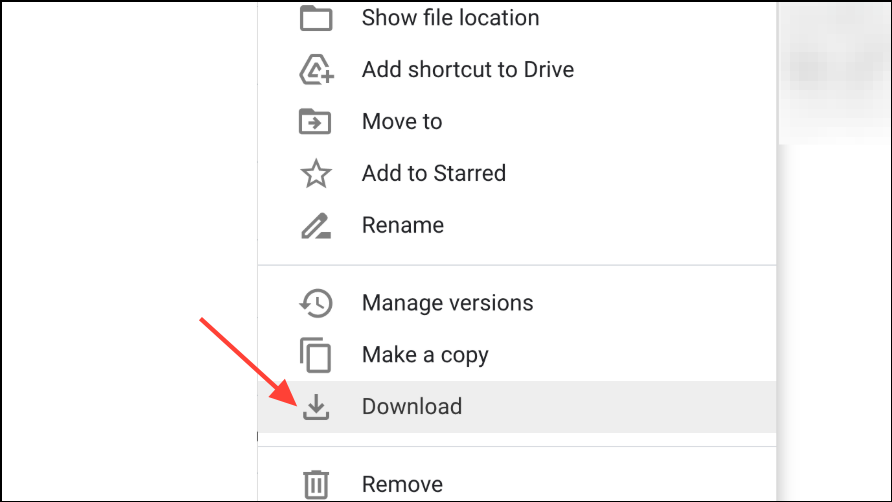 Step 3: Locate the copied file in your Drive, right-click it, and select “Download.” Since this copy belongs to your account and has not hit any download quota, you should be able to download it without issue.