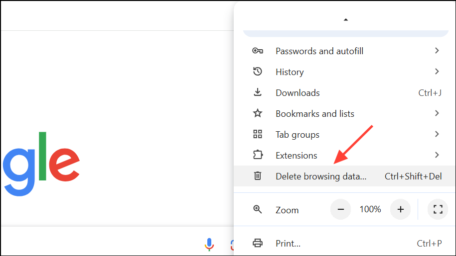 Step 1: Open your browser’s settings. In Chrome, click the three-dot menu and select Delete browsing data. In Firefox, go to Settings > Privacy & Security > Cookies and Site Data.