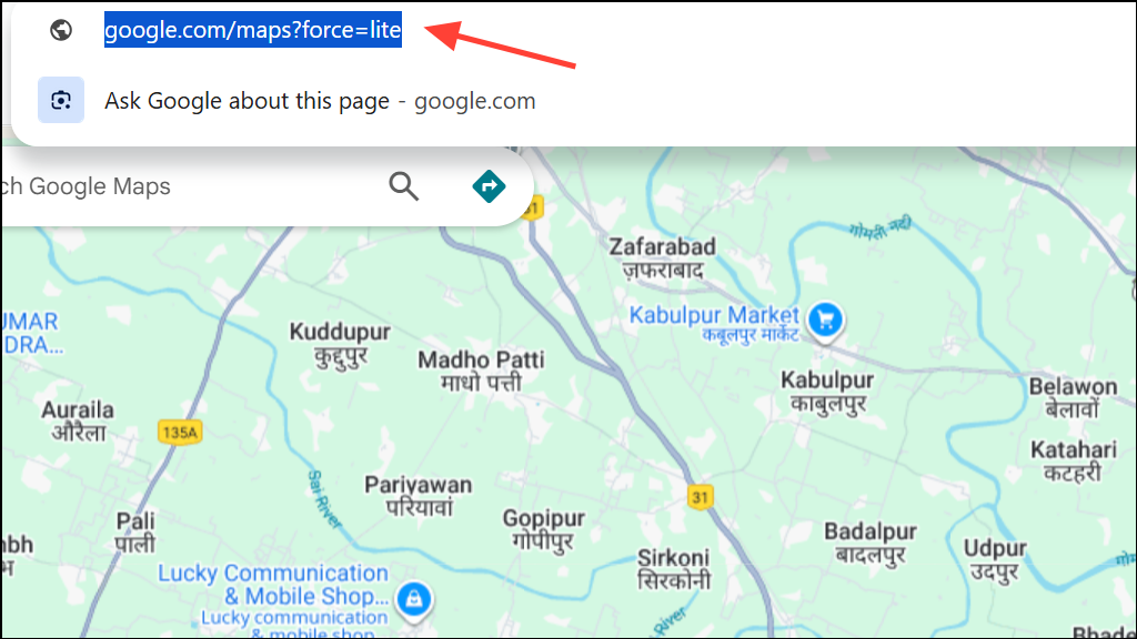 Step 2: Try Google Maps Lite by adding ?force=canvas to the end of the URL, or use ?force=lite for an even more simplified version. For example: https://www.google.com/maps?force=lite.