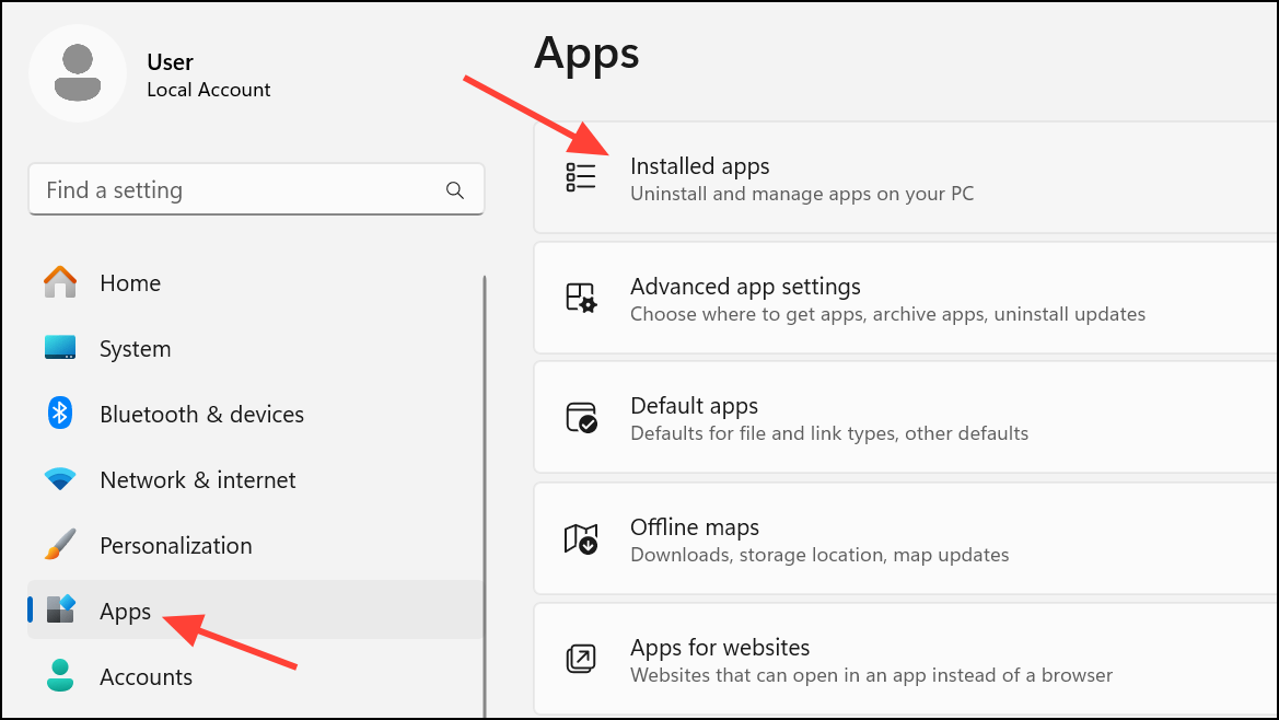Step 1: Press Windows + I to open Settings. Go to Apps > Installed apps (or Apps & features).