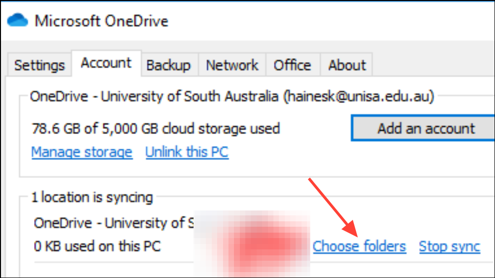 Step 2: Under the Account tab, click Choose folders and deselect any folders you don't need to sync. Avoid syncing directories with high file turnover, such as application logs or build output folders.