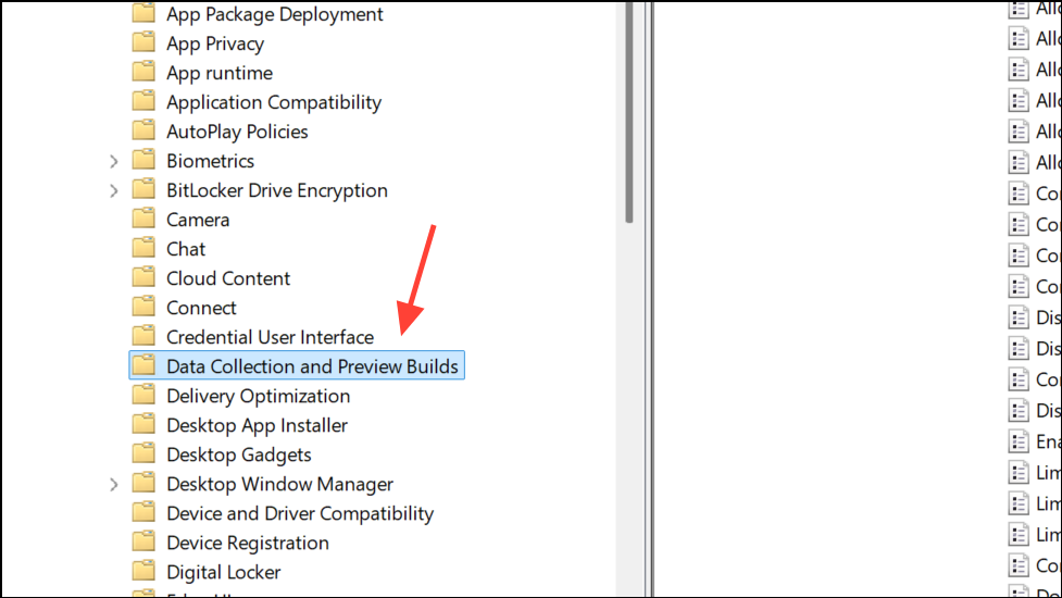 Step 2: Navigate to Computer Configuration > Administrative Templates > Windows Components > Data Collection and Preview Builds.