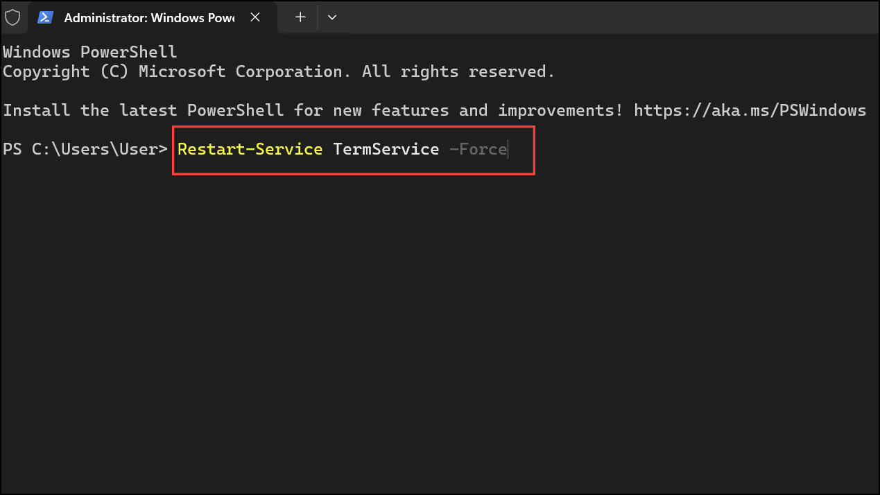 Step 2: Enter the following commands to restart the main Remote Desktop services: