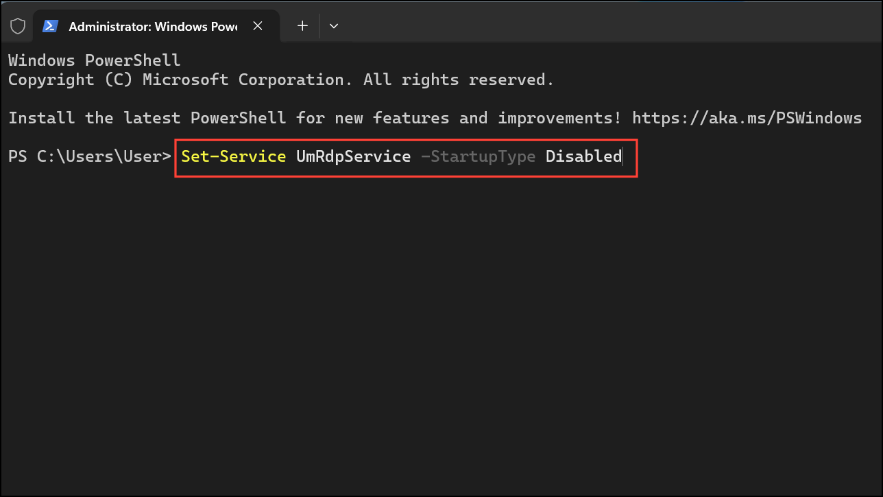 Step 2: Disable the unnecessary UserMode Remote Desktop Service if not required: