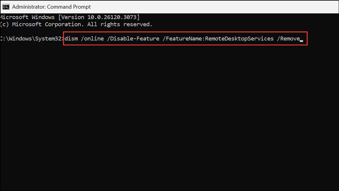 dism /online /Disable-Feature /FeatureName:RemoteDesktopServices /Remove