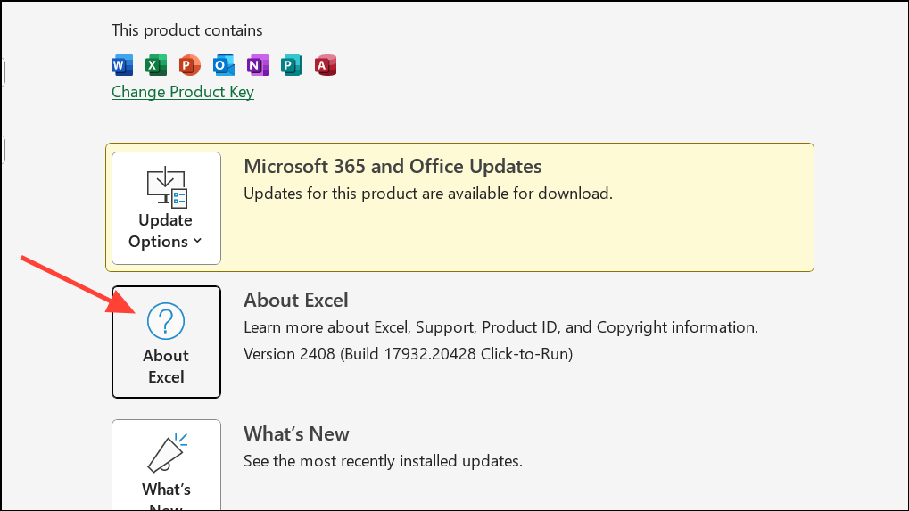 Step 2: To check your version, open Excel and go to File > Account > About Excel. If you are on 32-bit and do not depend on legacy add-ins, consider reinstalling Office as 64-bit.