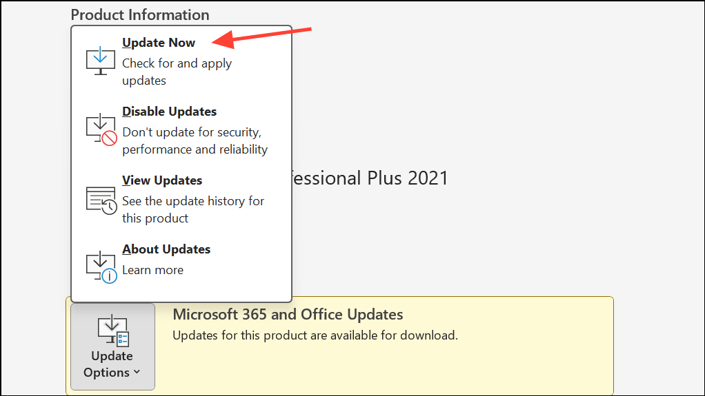Step 1: Ensure Excel and all Office applications are updated to the latest version. Updates often include performance improvements and bug fixes. Go to File > Account > Update Options and select Update Now.