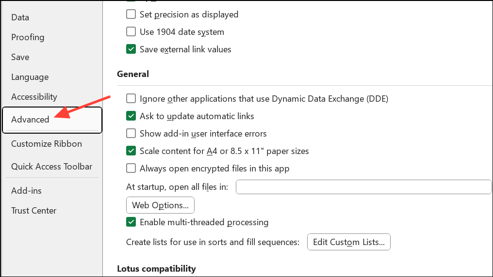 Step 1: Turn off hardware graphics acceleration. Go to File > Options > Advanced > Display and check Disable hardware graphics acceleration. This reduces graphical load and can prevent freezes on some systems.
