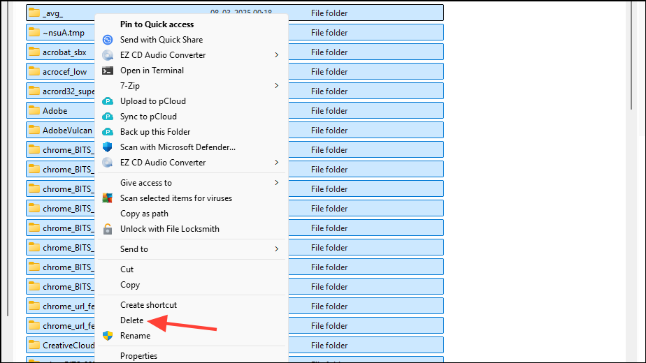 Step 2: Select all files (use Ctrl + A) in the new window that opens and delete them. These are temporary files that Windows no longer needs.