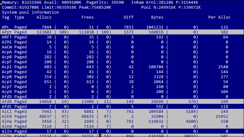 Step 2: Run PoolMon, sort by nonpaged memory usage (press P then B), and identify the driver tag consuming the most memory.