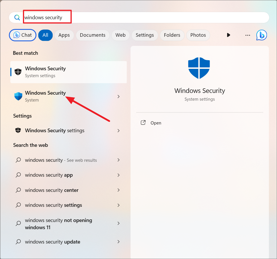Step 1: Press the Windows key, type Windows Security, and select the app from the search results.