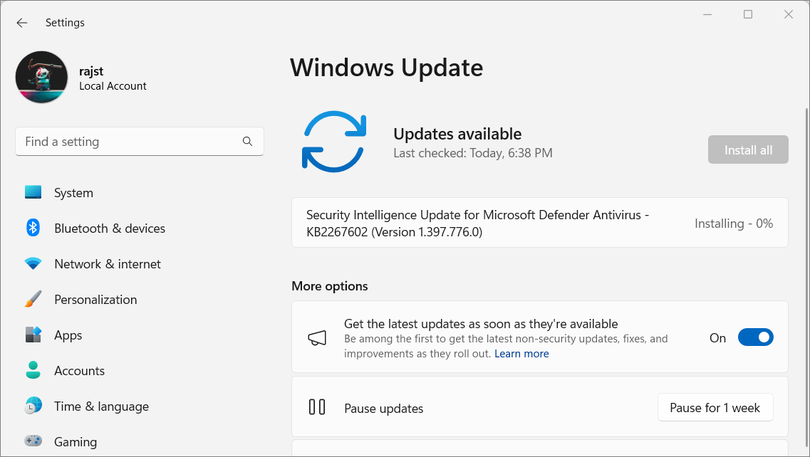 5. Install Windows updates