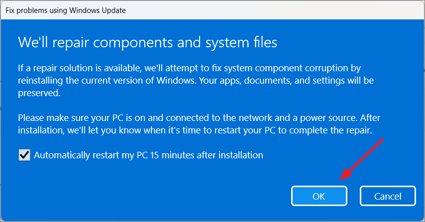 Step 3: Click 'OK' in the prompt to start the reinstallation process.
