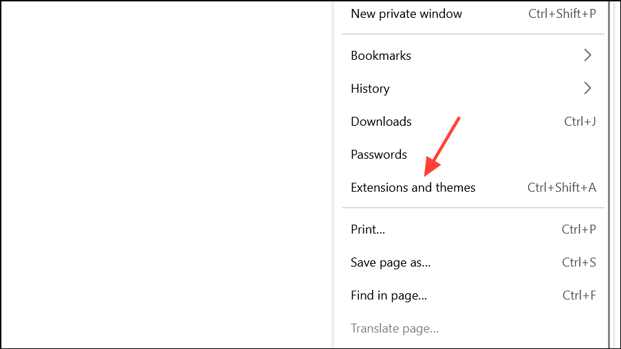 Step 1: Open the menu and select Extensions and themes or press Ctrl + Shift + A (Cmd + Shift + A on Mac).