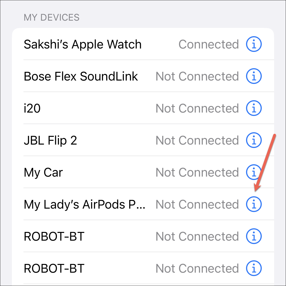 Go to the ‘My Devices’ section and tap the ‘i’ next to the device you want to forget.