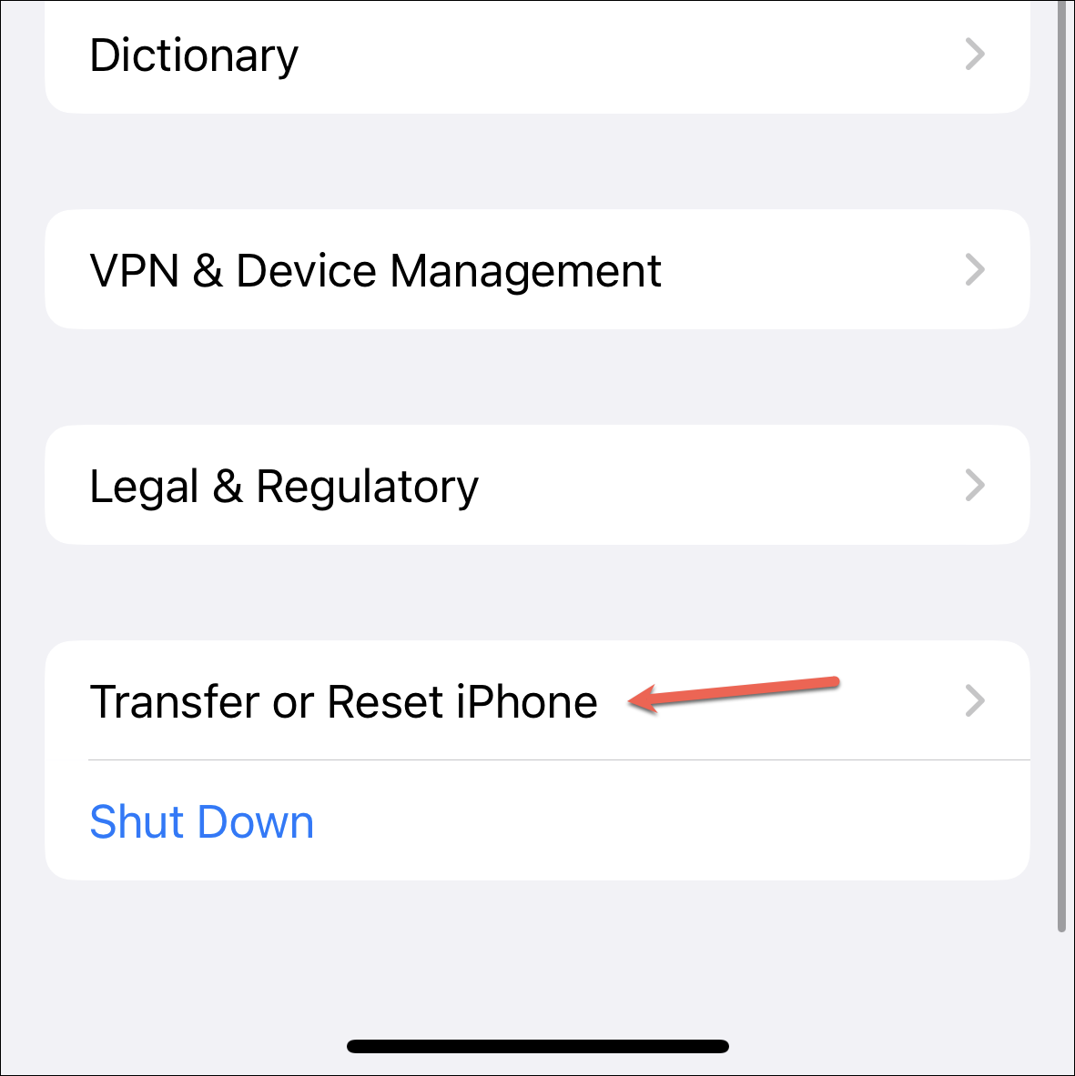 Then, scroll down and go to ‘Transfer or Reset iPhone’.