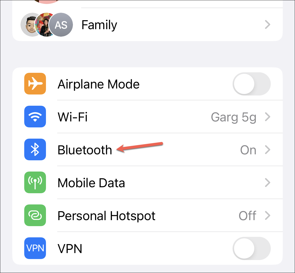 Open the Settings app and tap the ‘Bluetooth’ option.