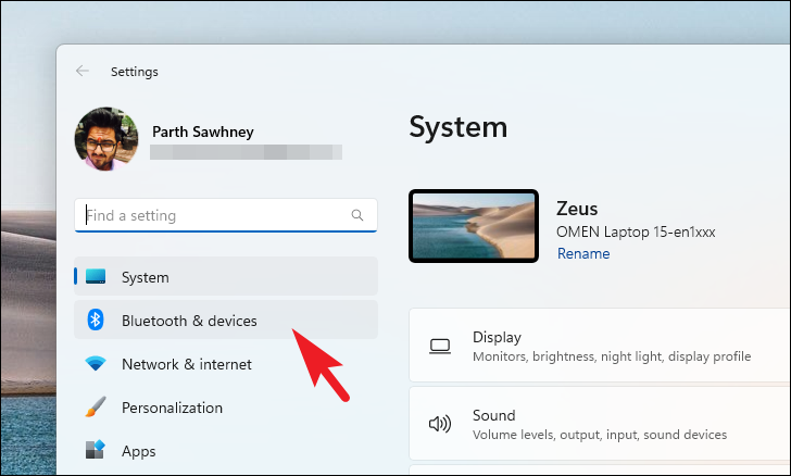 Step 2: Click on Bluetooth & devices from the left sidebar.