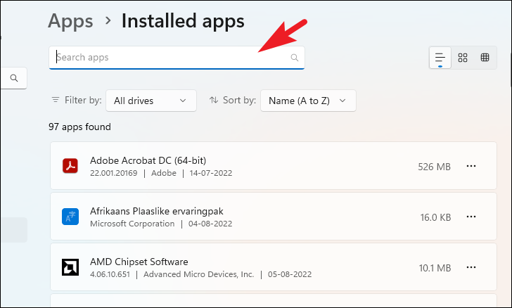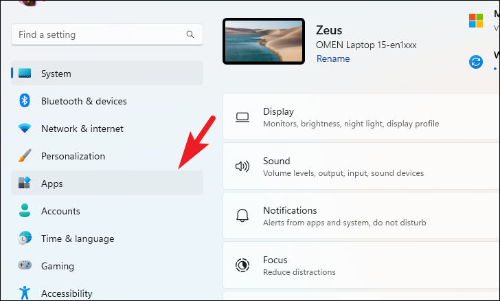 Step 2: Click on Apps from the left sidebar, then select Installed apps.