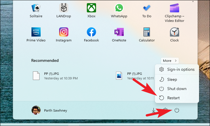 Step 2: Select Restart from the options.