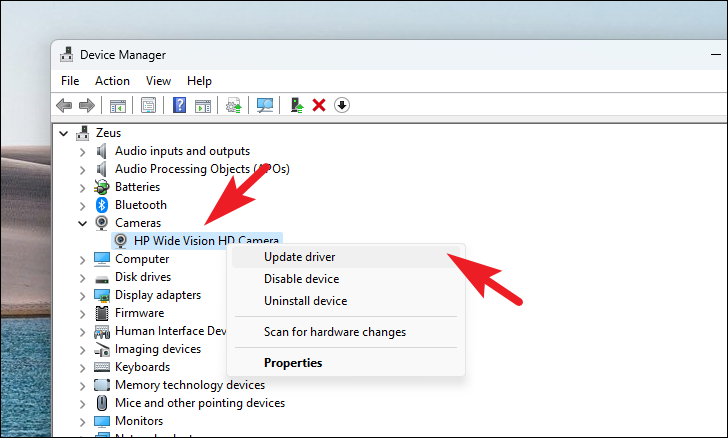 Step 3: Right-click on your camera device and select Update driver.