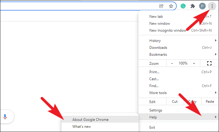 Then, click on the kebab menu icon (three vertical dots) present on the top right corner of the screen. After that, hover over the ‘Help’ option and then click to select the ‘About Google Chrome’ option.