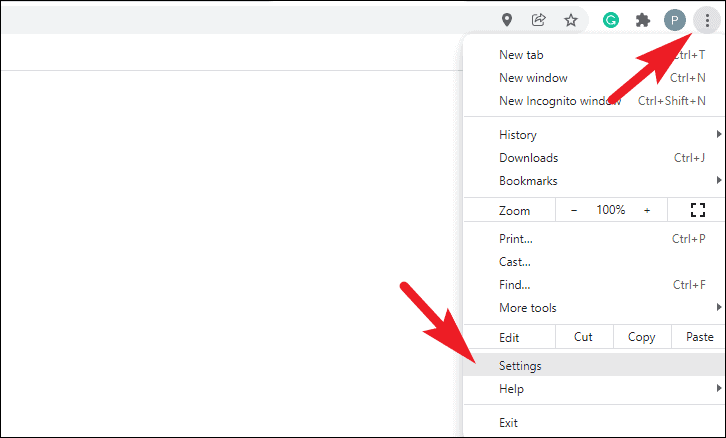 Next, click on the kebab menu icon (three vertical dots) present on the top right corner of the Chrome window. After that, select the ‘Settings’ option from the expanded list to continue.