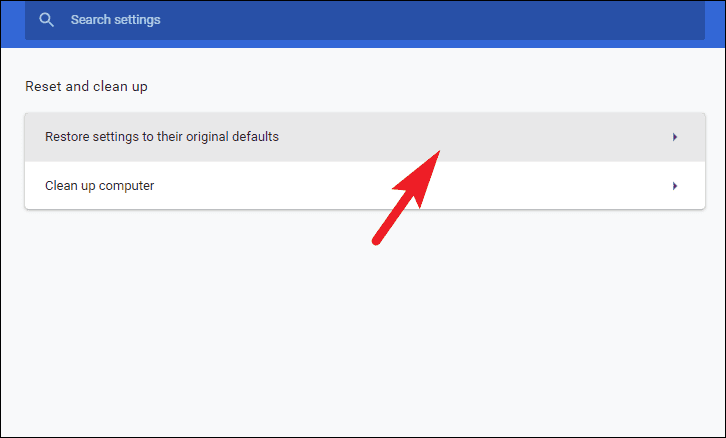 After that, from the right section of the page, click to select the ‘Restore settings to their original defaults’ option. This will open an overlay panel on your screen.