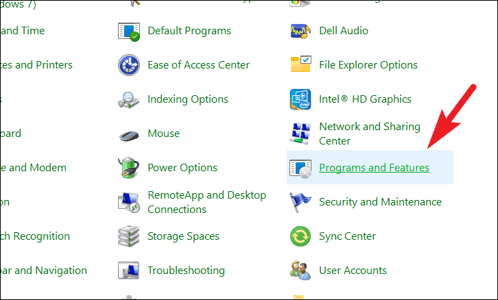 Then, from the control panel, locate and click on the ‘Programs and Features’ option to continue.