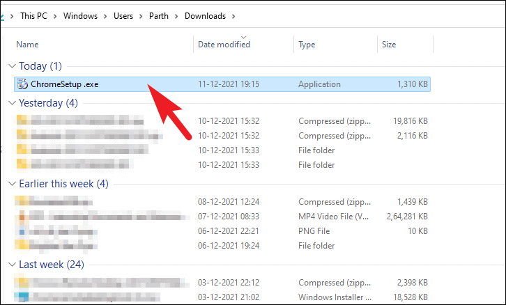 Once downloaded, open your default downloads directory and locate the .EXE file. Then, double-click on the field to run the setup and install Google Chrome on your device.