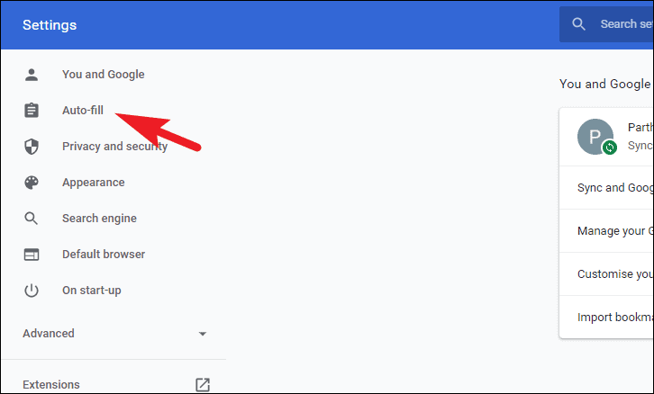 Now, click to select the ‘Auto-fill’ tab from the left sidebar.