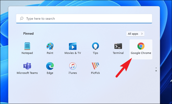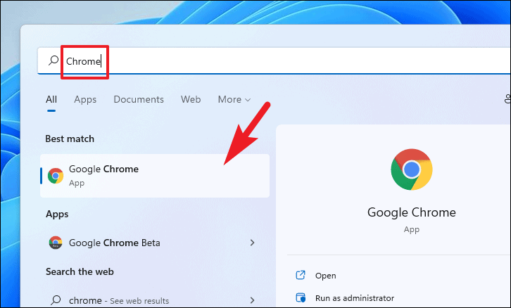 To do so, launch the Chrome app either from the desktop or by searching for it from the Start Menu.