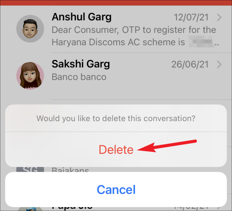 A confirmation prompt will appear. Tap ‘Delete’ again to delete the chat. This is one of the easiest ways to delete the entire chat thread for someone.