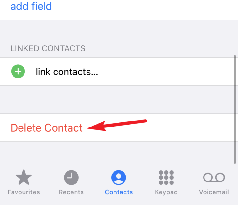 A confirmation prompt will appear. Tap ‘Delete Contact’ again to confirm.