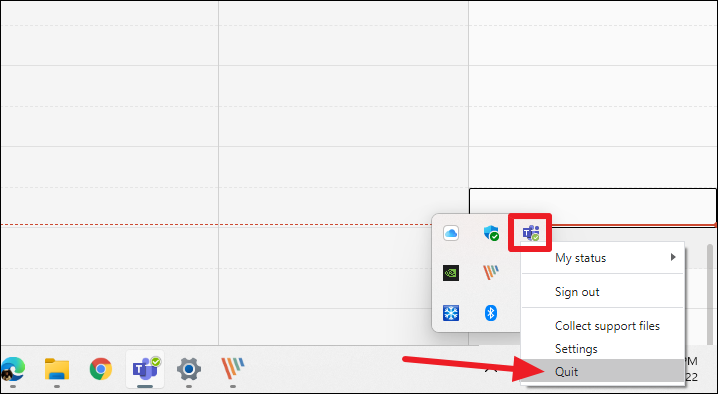 To clear the cache for the Teams app, exit the Teams app and open the File Explorer. Exiting the Teams app requires you to completely quit it. And unless you’ve configured it otherwise, Teams is still running in the background even after you hit the close button on the app window. To completely quit it, go to the system tray and right-click the Teams icon (if it’s present, otherwise skip this step). Then, select ‘Quit’ from the menu.