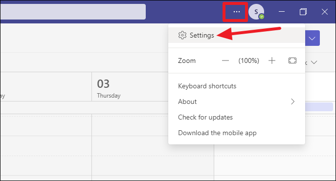 Open settings in the Teams app by clicking the ‘More options’ icon and then selecting ‘Settings’.