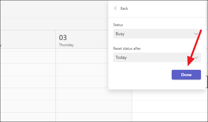 Then, select the duration under ‘Reset status after’ to manually let others know how long you’ll be busy or away, for example.