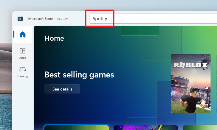 Step 9: In the Microsoft Store, search for Spotify using the search bar at the top.