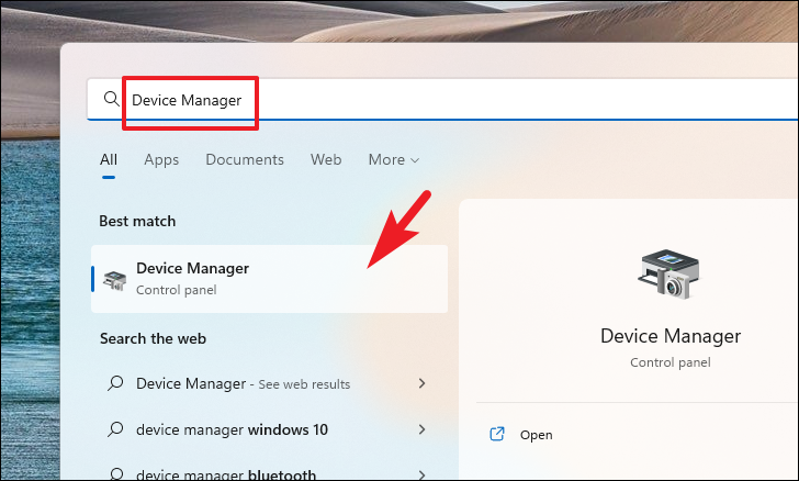 Step 1: Open the Device Manager. You can do this by searching for Device Manager in the Start Menu.