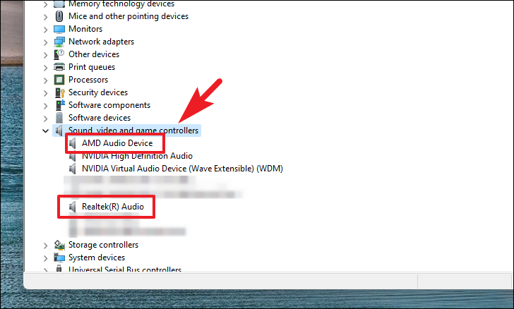 Step 2: Expand the Sound, video, and game controllers section to view your audio devices.