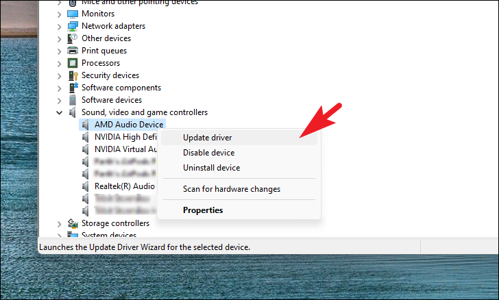 Step 3: Right-click on your audio device (e.g., Realtek(R) Audio) and select Update driver.
